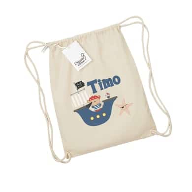 Schnullireich Kindergartenbeutel / Stoffbeutel / Turnbeutel mit Namen Pirat Natur